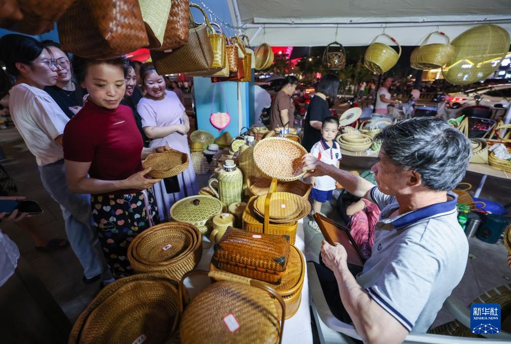 9月16日,市民在共富市集上选购传统竹编制品。新华社记者 徐昱 摄