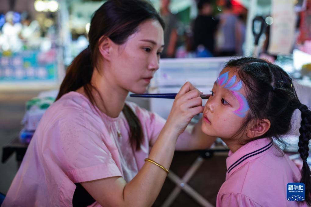 9月16日,小朋友在共富市集上体验面部彩绘。新华社记者 徐昱 摄